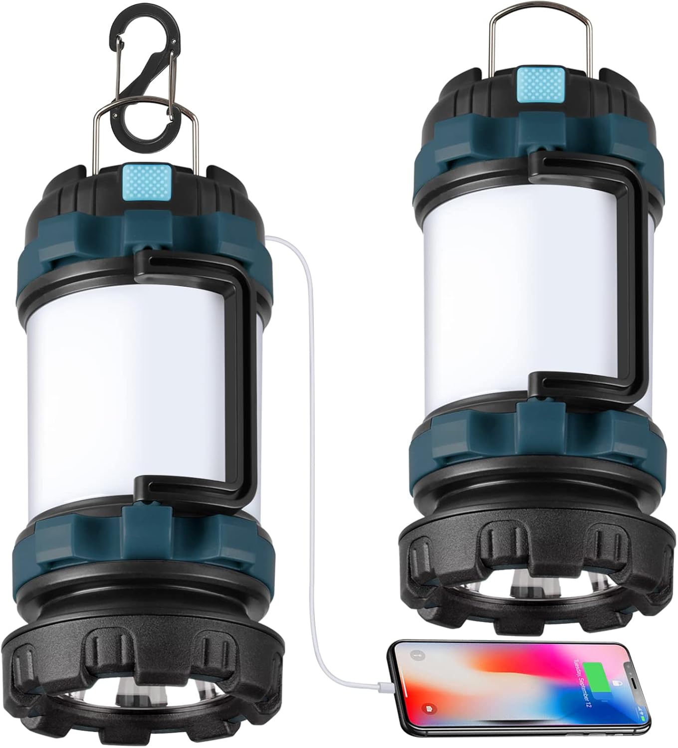 2 Pack Camping Lantern, Outdoor LED Camping Light, Rechargeable Flashlights with 1000LM, 6 Modes, 4000mAh Power Bank, Waterproof Portable Emergency Camp Light for Hurricane Survival – Blue
