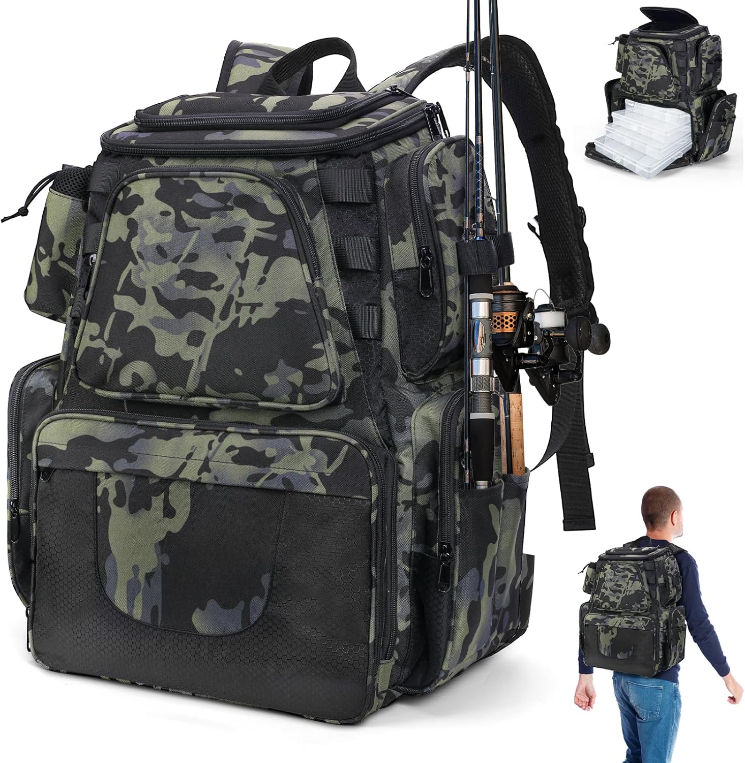 • SAFETY & COMFORTABLE: The fishing rucksack is equipped with sponge shoulder straps and a sponge lining on the back for a snug. Special locking buckle design of the belt makes the bag more secure, and there is also a pole insertion design, which can fix the fishing pole, making it more convenient for travel afar. Adjustable zipper shoulder straps can be adjusted to the most comfortable length, comfort and ultra-convenience. Free and flexible use to make your travelling with peace of mind.