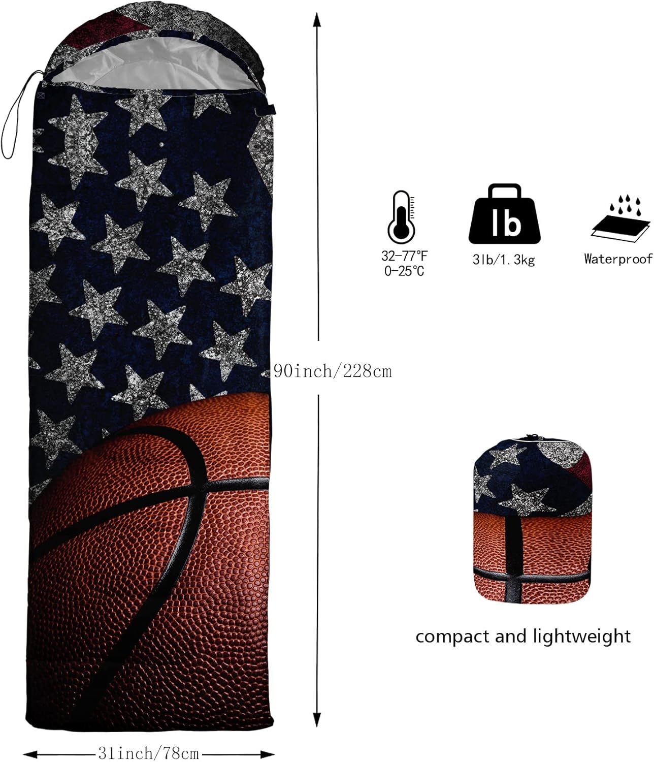 LIGHTWEIGHT AND COMPACT PACKAGE: Pack Weight is 3lbs, the package size is cylinder 11.8 by 13.8 inches and would take up less space. Convenient to carry along for any outdoor adventures, class camping trip, the aquarium, summer camp, couch surfing, jam bags, office crashing, and as an emergency blanket for vehicles.