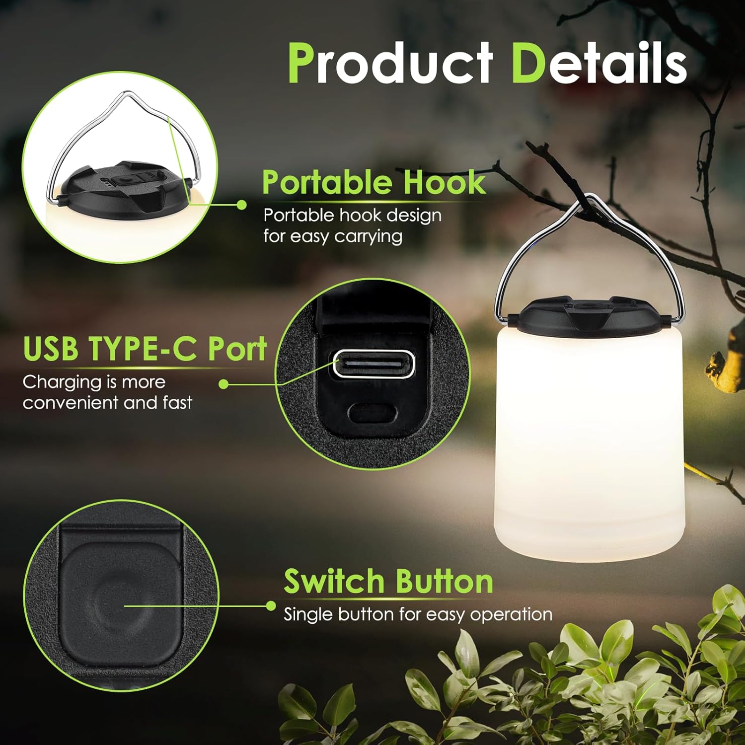 • Rechargeable Versatile Companion: The camp lanterns features a rechargeable design, you can rely on it repeatedly, providing convenience and sustainability for all activities. Outdoors, it’s perfect for camping, hiking, fishing, etc. Indoors, it serves as a night light for kids’ rooms, a backup lighting source during power outages, or added ambiance during backyard gatherings. Whether you’re exploring the great outdoors or simply need reliable lighting at home, this lantern has you covered.
